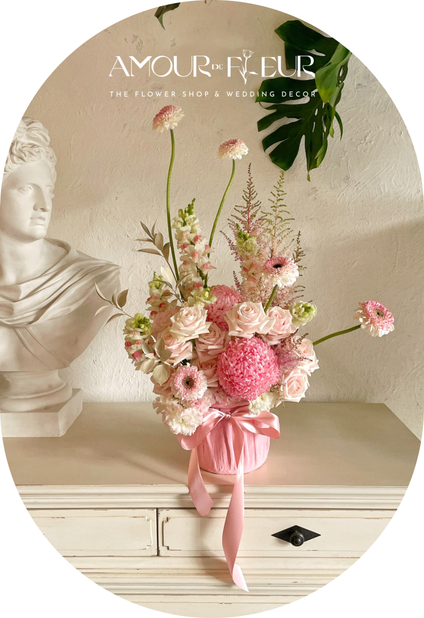 Amour chúng mình là nơi tạo ra những sản phẩm hoa tươi từ sản phẩm bán lẻ P2P tới những sản phẩm nghệ thuật triển lãm, trang trí tiệc cưới, trang trí window show, stylist về hoa cho các buổi chụp Lookbook, thời trang…