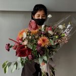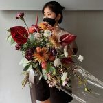 Bó hoa với tone màu trầm , giấy gói chỉ dùng giấy trong suốt đơn giản, phong cách gói hoa phòng khoáng phi trật tự cùng với sự kết hợp của các loại: